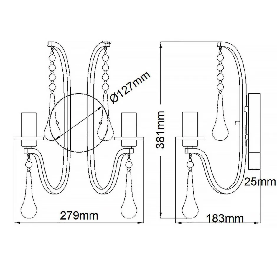Funkelnde Kristalle verleihen der Wandlampe einen edlen Chrakter, der ideal in Schlafzimmer, Wohnzimmer und Flur zur Geltung kommt