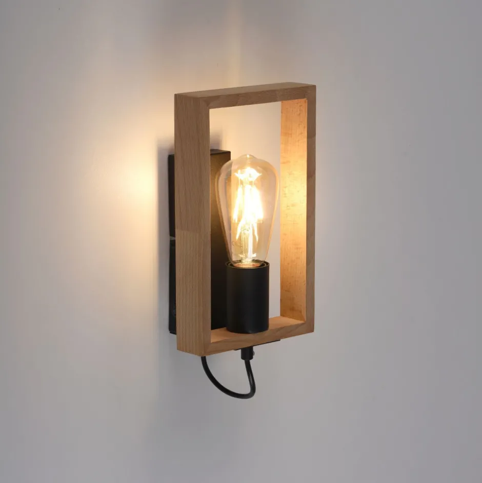 Retro Wandleuchte aus Metall und Holz