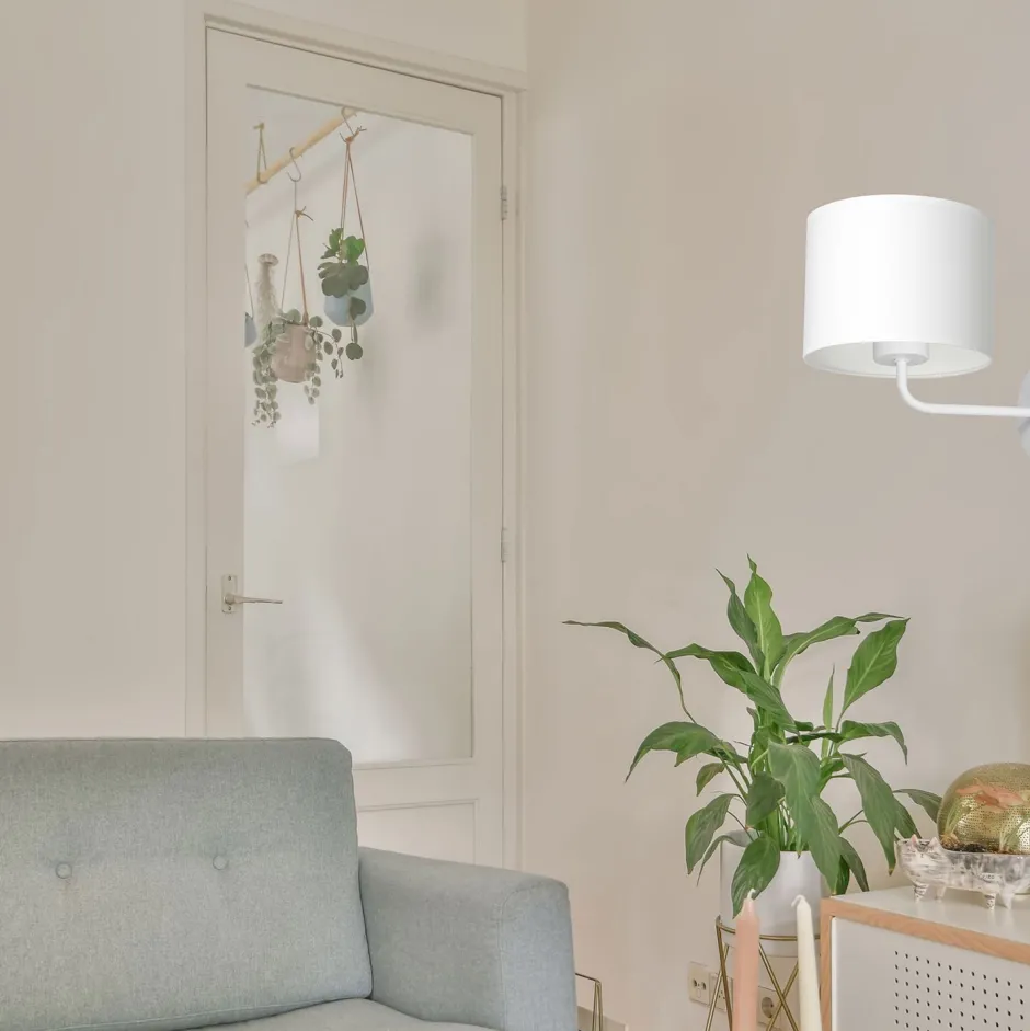 Zeitlose Wandleuchte aus lackiertem Stahl, Stoff und Kunststoff in Weiß