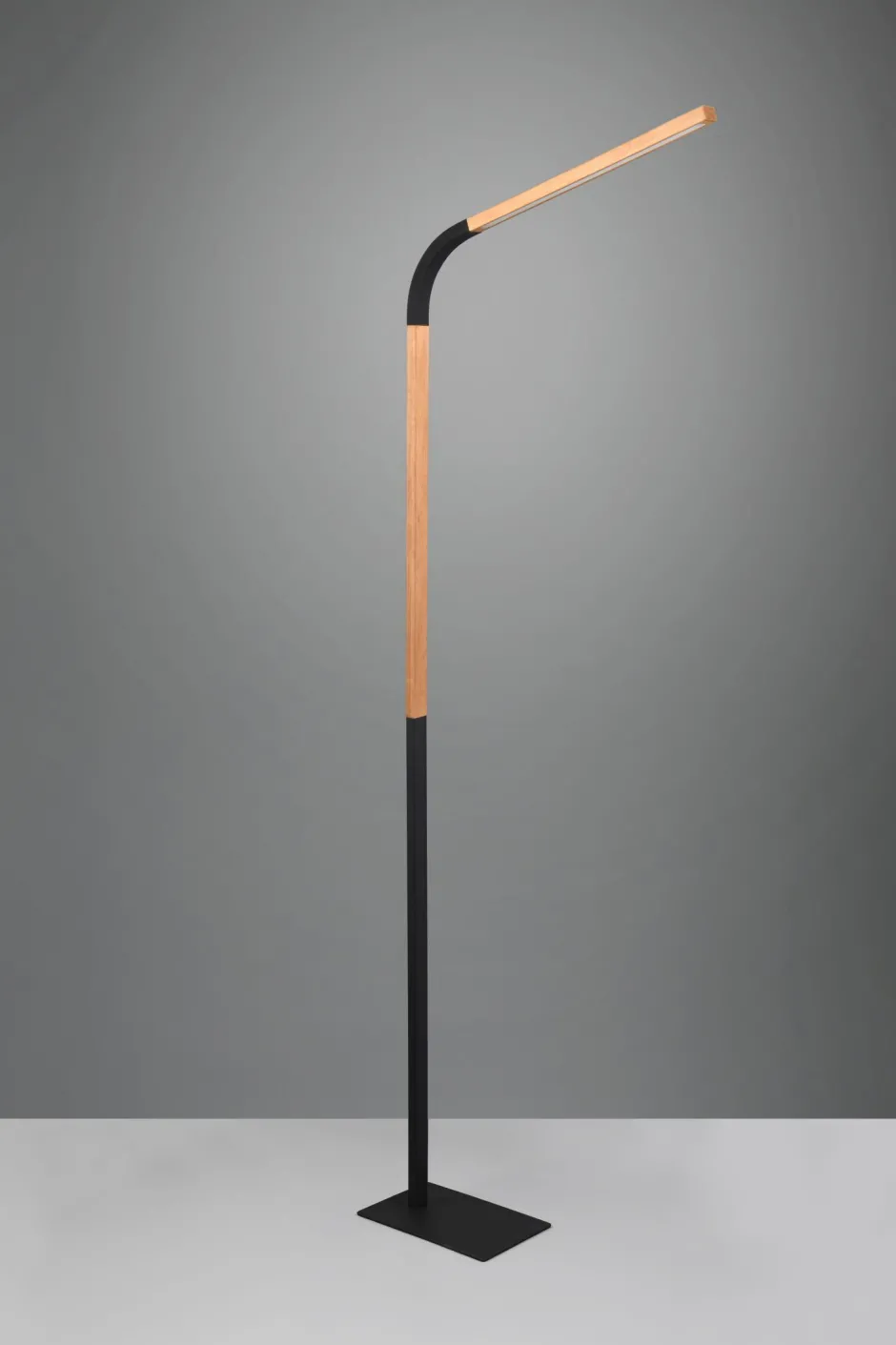 Skandinavische LED Stehleuchte aus Metall und Holz in Schwarz