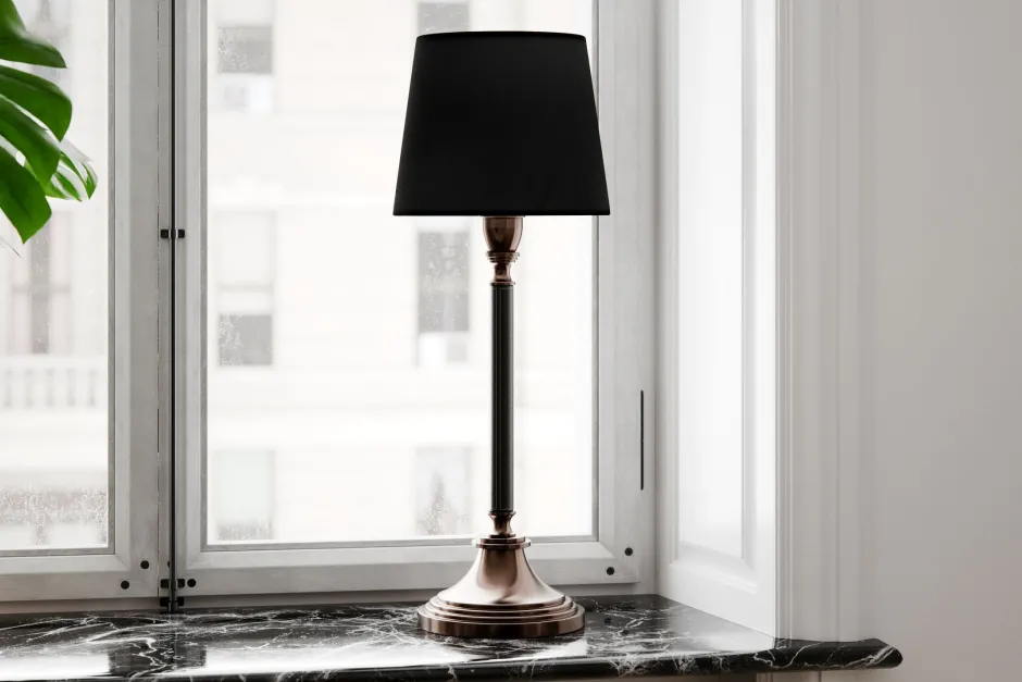 Große Tischlampe mit Stoffschirm im klassischen Design für Schlafzimmer und Wohnzimmer