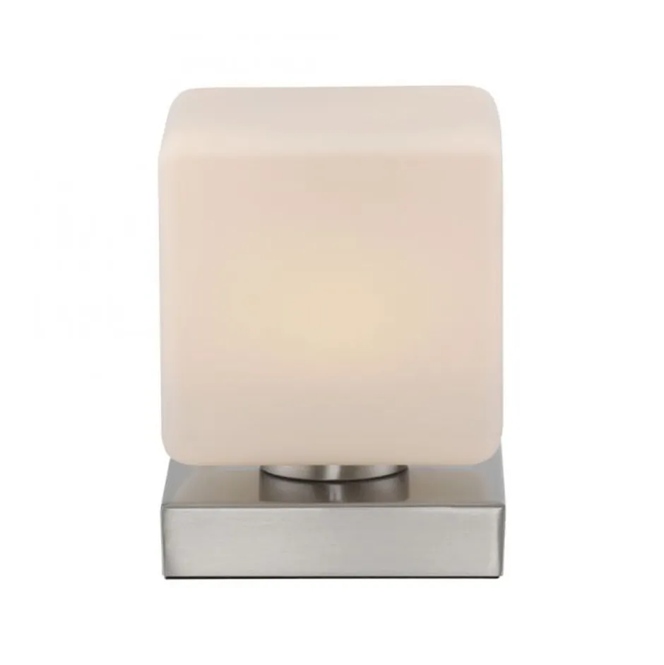 Moderne LED Tischlampe mit Glasschirm in Stahl