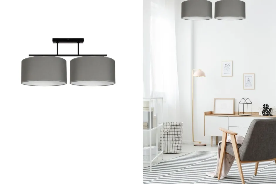 Qualität Made in EU Entdecke die moderne Deckenlampe BIRNO, die mit ihrem eleganten Design aus Metall und Stoff nicht nur funktional, sondern auch ein echter Blickfang in deinem Zuhause ist. Die graphitfarbenen Stoffschirme streuen das Licht sanft und blendarm, wodurch eine gemütliche Atmosphäre in deinem Wohnzimmer, Schlafzimmer, Flur, Esszimmer oder Arbeitszimmer entsteht. Diese Deckenleuchte ist die perfekte Wahl für alle, die Wert auf harmonisches Licht und stilvolles Design legen. Mit einer Höhe von 300 mm und einer Länge von 700 mm passt die BIRNO Deckenlampe ideal in verschiedene Raumgrößen. Du hast die Freiheit, die Helligkeit und Lichtfarbe selbst zu bestimmen, da die Leuchte mit zwei E27–Fassungen (max. 60W) ausgestattet ist. So kannst du die Lichtstimmung ganz nach deinen Wünschen gestalten – ob warmes Licht für entspannte Abende oder helles Licht für konzentriertes Arbeiten. Die Qualität „Made in EU“ garantiert dir zudem eine langlebige und zuverlässige Nutzung. Die BIRNO Deckenlampe ist für den Innengebrauch konzipiert und erfüllt die IP20–Schutzklasse, was sie ideal für trockene Innenräume macht. Ob als Wohnzimmerlampe modern, als Deckenleuchte für das Esszimmer oder als stilvolle Schlafzimmerlampe – diese Leuchte vereint Funktionalität und Ästhetik auf perfekte Weise. Fazit: Setze mit der BIRNO Deckenlampe auf Qualität und Design, die dein Zuhause aufwerten. Lass dich von der Flexibilität der Lichtgestaltung inspirieren und genieße die harmonische Atmosphäre, die diese Deckenleuchte in jeden Raum bringt.