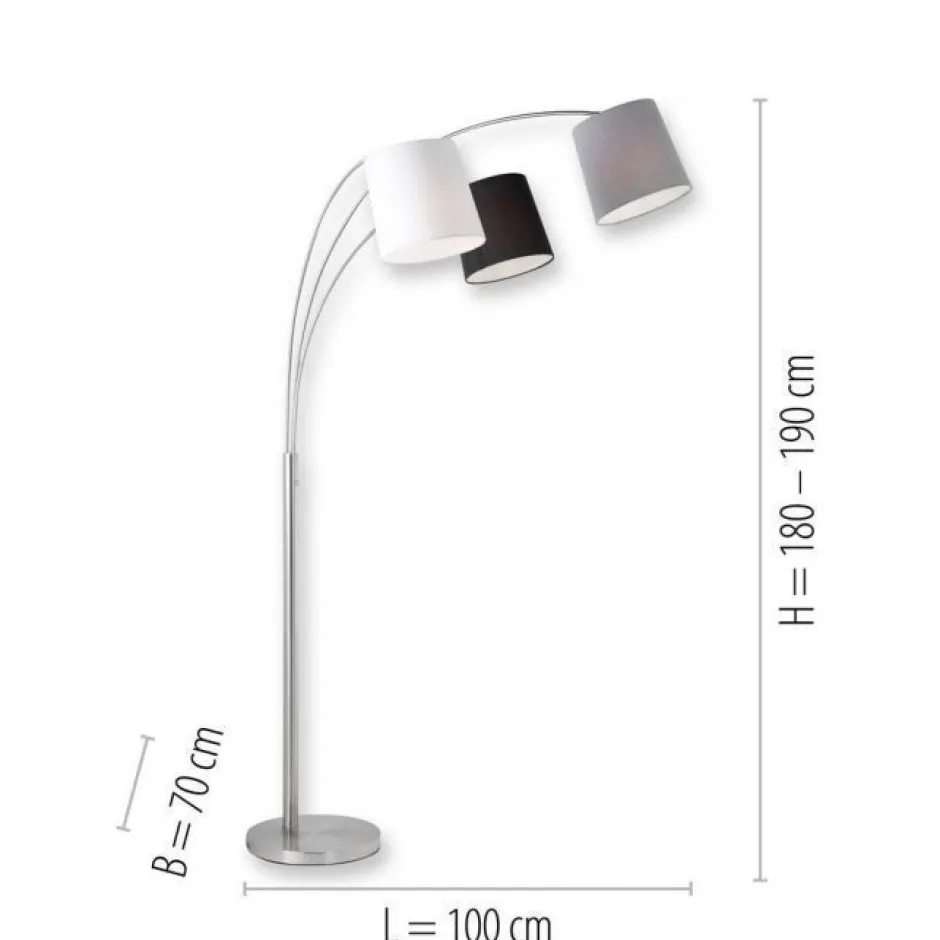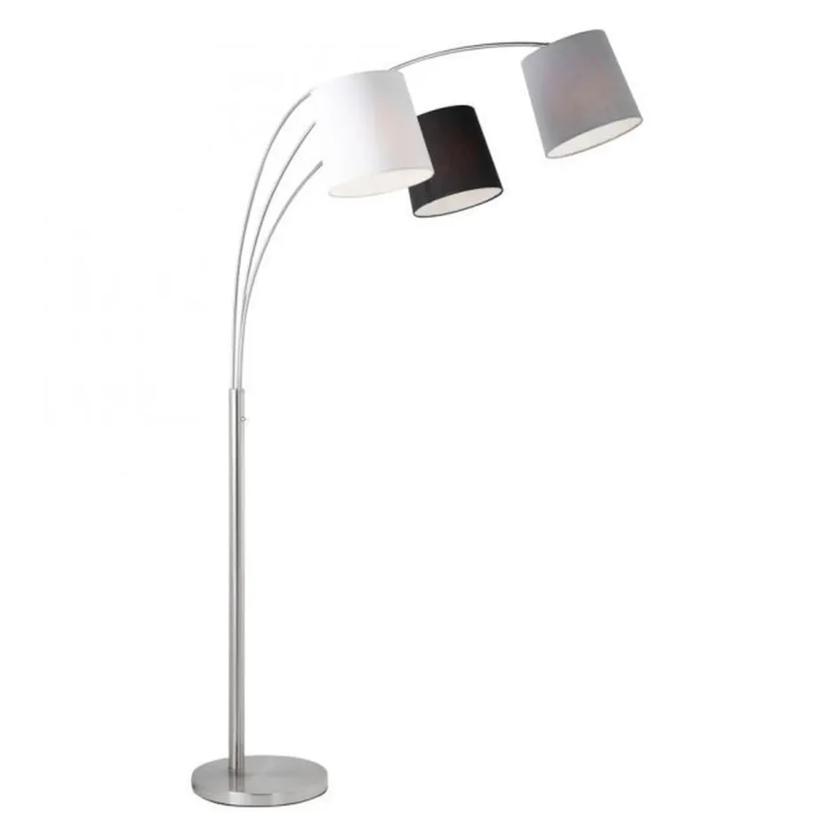 Moderne Stehleuchte mit verschiedenfarbigen Stoffschirmen und Gestell in Stahl